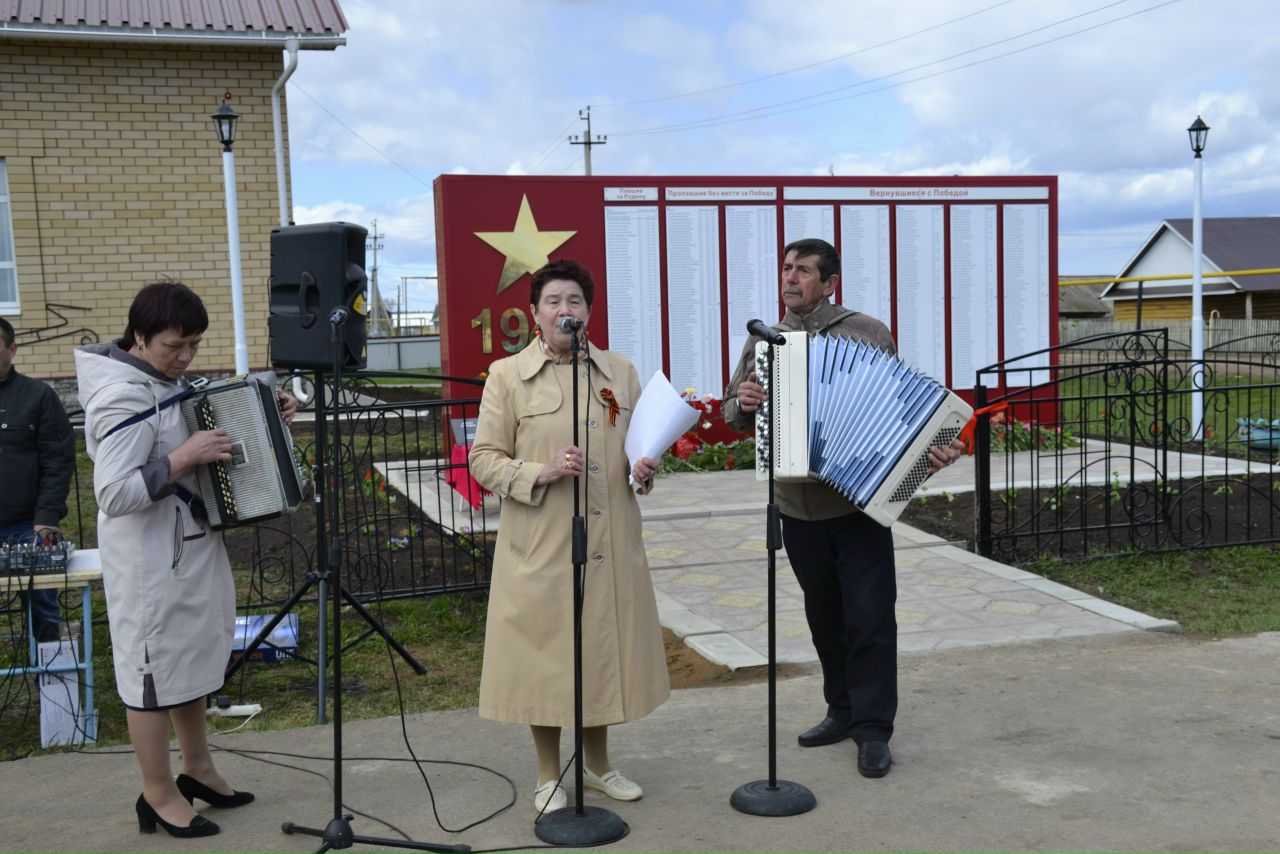 -Бөек Ватан сугышында катнашып, илебезгә җиңү яулаган авылдашларыбызның исемен мәңгеләштерү күптәнге хыялыбыз иде. Безнең изге эшкә өлешебез керүенә үзебез дә сөенәбез. Һәйкәлгә шушы җирлектәге 496 кешенең исемнәре уеп язылды. Сугышлар кабатланмасын аяз күгебездә.